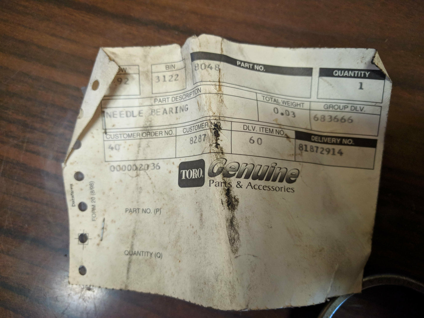 This is part number 8048, a Needle Bearing. This is NOS Wheel Horse. This part has been discontinued.